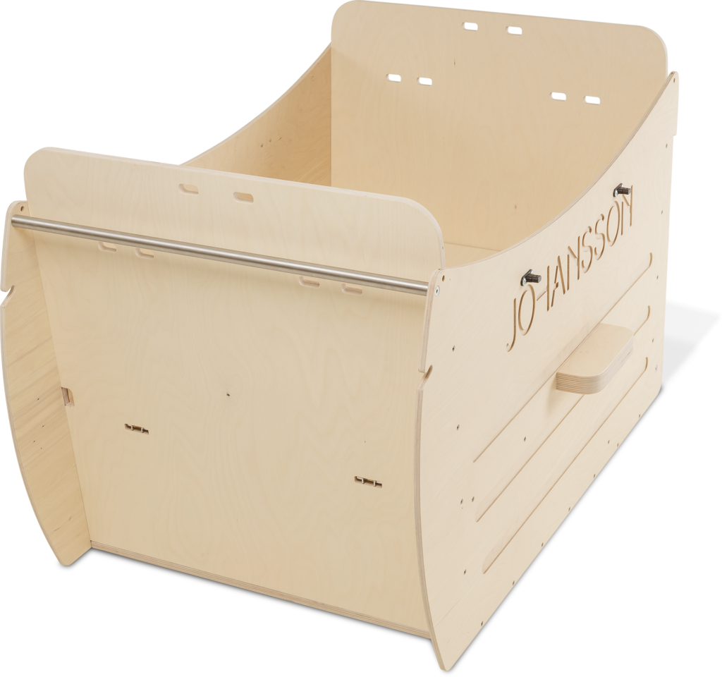 Gefertigt aus stabilem Multiplex-Birkenholz bietet der Vario Transportkorb Platz für bis zu vier Kinder. Ein zusätzliches abschließbares Fach in der Box ermöglicht es, wertvolle Sachen sicher zu verstauen. Die klappbare Sitzbank schafft Platz für sperrige Gegenstände. So wird Fiete zum idealen Alleskönner.